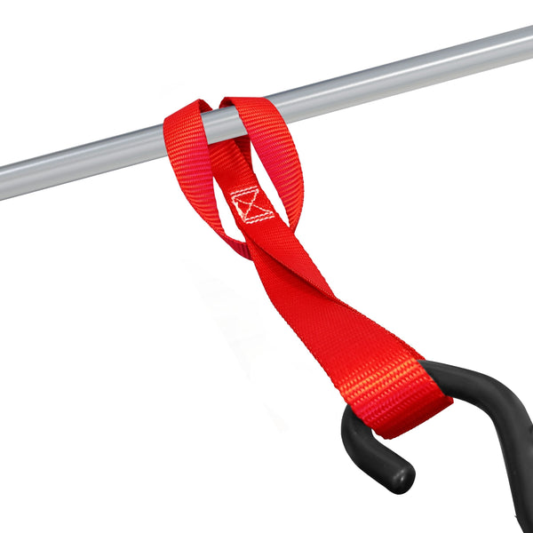 Protect your bike’s handlebars and forks with our 1" x 18" Soft Tie Loops. These are built tough, with a WLL of 600 lbs and a Breaking Strength of 1,800 lbs, offering a non-metal contact point for safer securement.