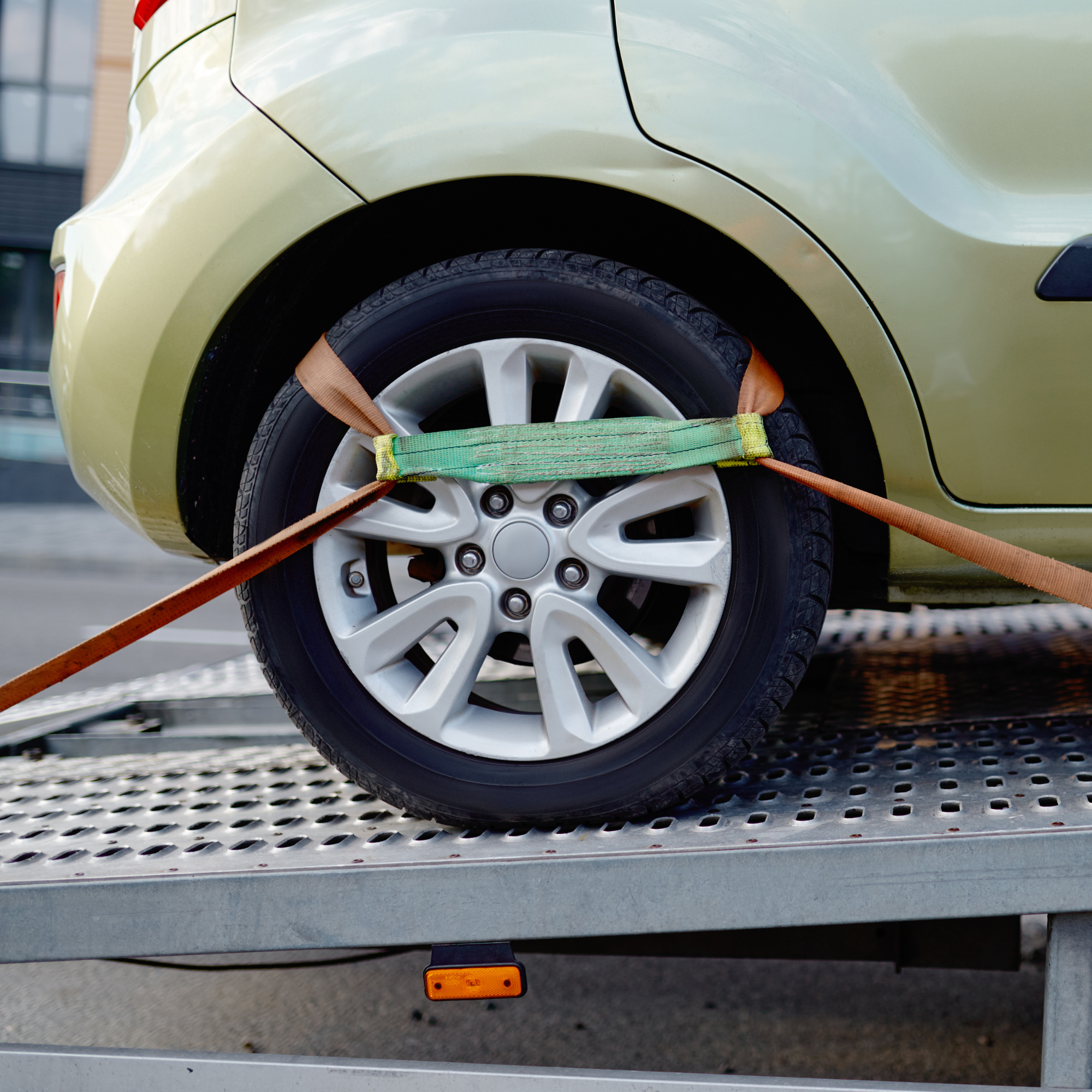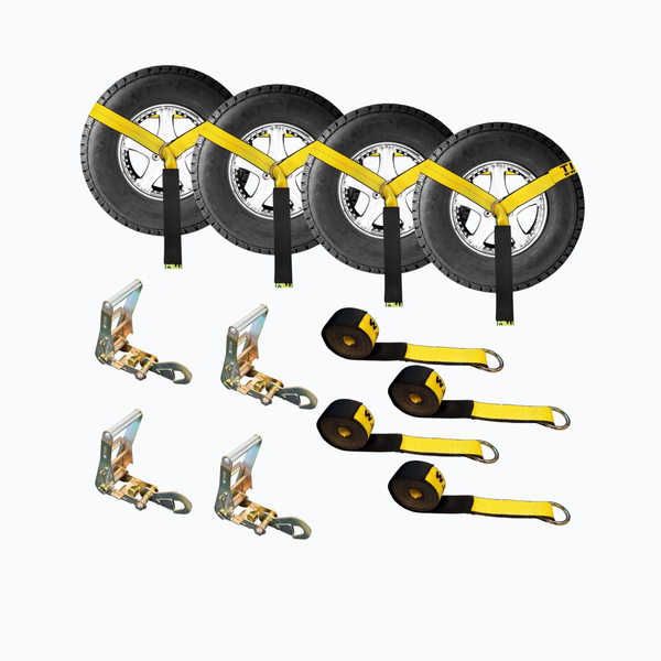 These straps are specifically designed to secure a vehicle’s wheels to a trailer or flatbed, preventing shifting during transport.