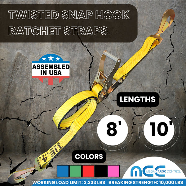 These heavy-duty ratchet straps feature a twist snap hook design, ensuring a secure, low-clearance attachment. Mega Cargo Control’s Twisted Ratchet Straps stand out with their superior strength, versatility, and user-friendly design. Whether you're hauling equipment for work or adventure, these heavy-duty ratchet straps provide unmatched durability and security..
