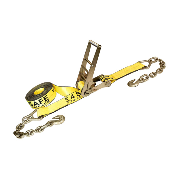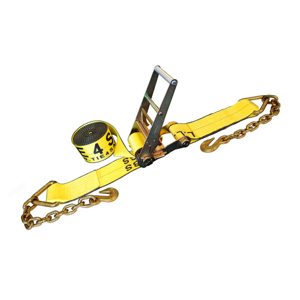 4" Ratchet Tie Down Strap w/ Chain Extensions