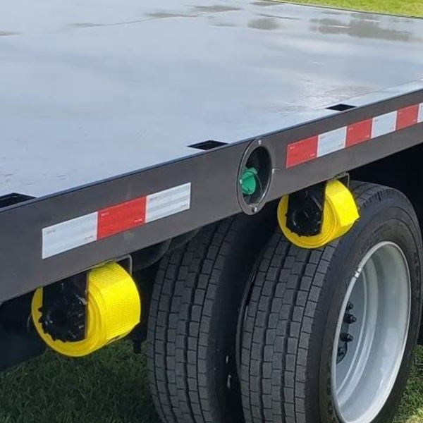 Flatbed trailers hauling heavy equipment, construction materials, and oversized loads where frequent strap adjustments are needed. Trailers with restricted space or when a lower-profile securement system is preferred.