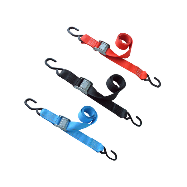 Cam Buckle S-Hook Straps are heavy-duty lashing straps designed with a cam buckle tensioning mechanism and S-hook end fittings for quick and secure attachment. Made from high-strength polyester webbing, these straps are built to withstand rigorous use while providing effortless adjustment.