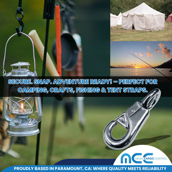For outdoor setups, bull nose snap hooks are ideal for connecting ground anchors and guy lines. Their rust-resistant material ensures they perform well in all weather conditions, making them a reliable choice for camping, hiking, and other outdoor activities.