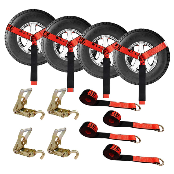 Side Mount Wheel Net With Flat Hook Ratchet Strap - 4 Pack