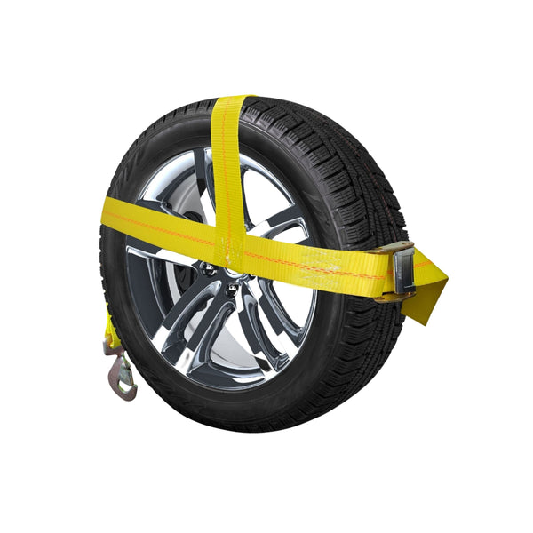 Our Tow Dolly Strap with Flat Hook Ends is built for heavy-duty commercial use, featuring a reinforced 4-inch top strap for added durability, heat resistance, and tire protection. These straps are trusted nationwide for their long-lasting performance under demanding towing conditions.