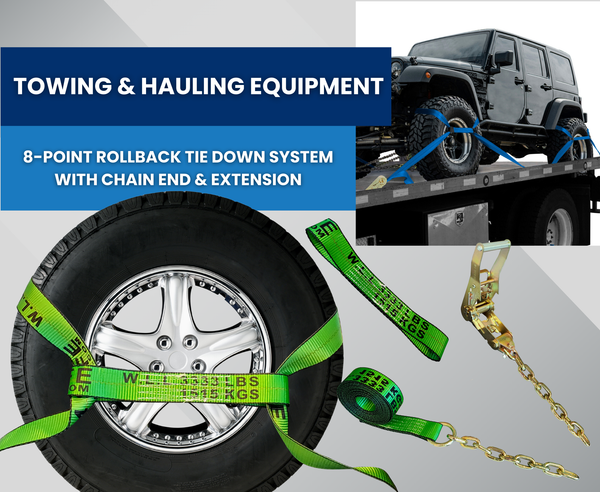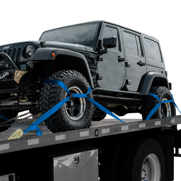 8 Point tie downs refer to a towing system that secures a vehicle at eight distinct points. This method provides optimal stabilityand security during transport, significantly reducing the risk of shifting or movement. By distributing tension evenly across multiple points, the 8-point system ensures your vehicle remains firmly in place, even over bumpy roads or uneven terrain.